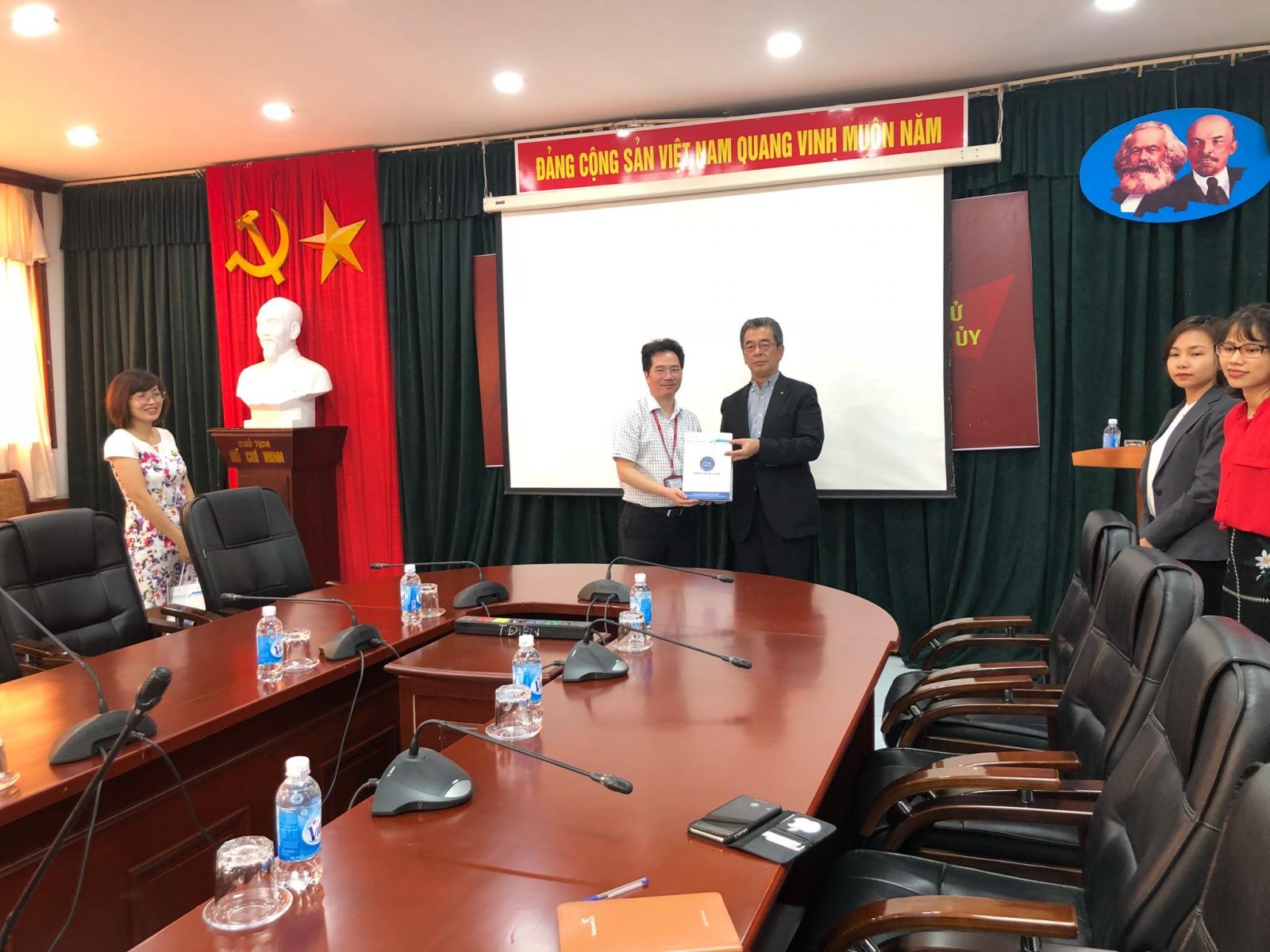 Có mặt tại buổi làm việc về phía Nhà trường có GS.TS Bùi Xuân Nam- Phó hiệu trưởng Nhà trường, Cô Nguyễn Thị Phương Thảo- Phòng hợp tác Quốc tế, ThS Nguyễn Kim Chung- Phòng Quan hệ Công chúng và Doanh nghiệp. Về phía Công ty Khang Anh có bà Triệu Thị Hải Hà- Phó giám đốc công ty và ông Kudo Katumasa đại diện tập đoàn Advance.